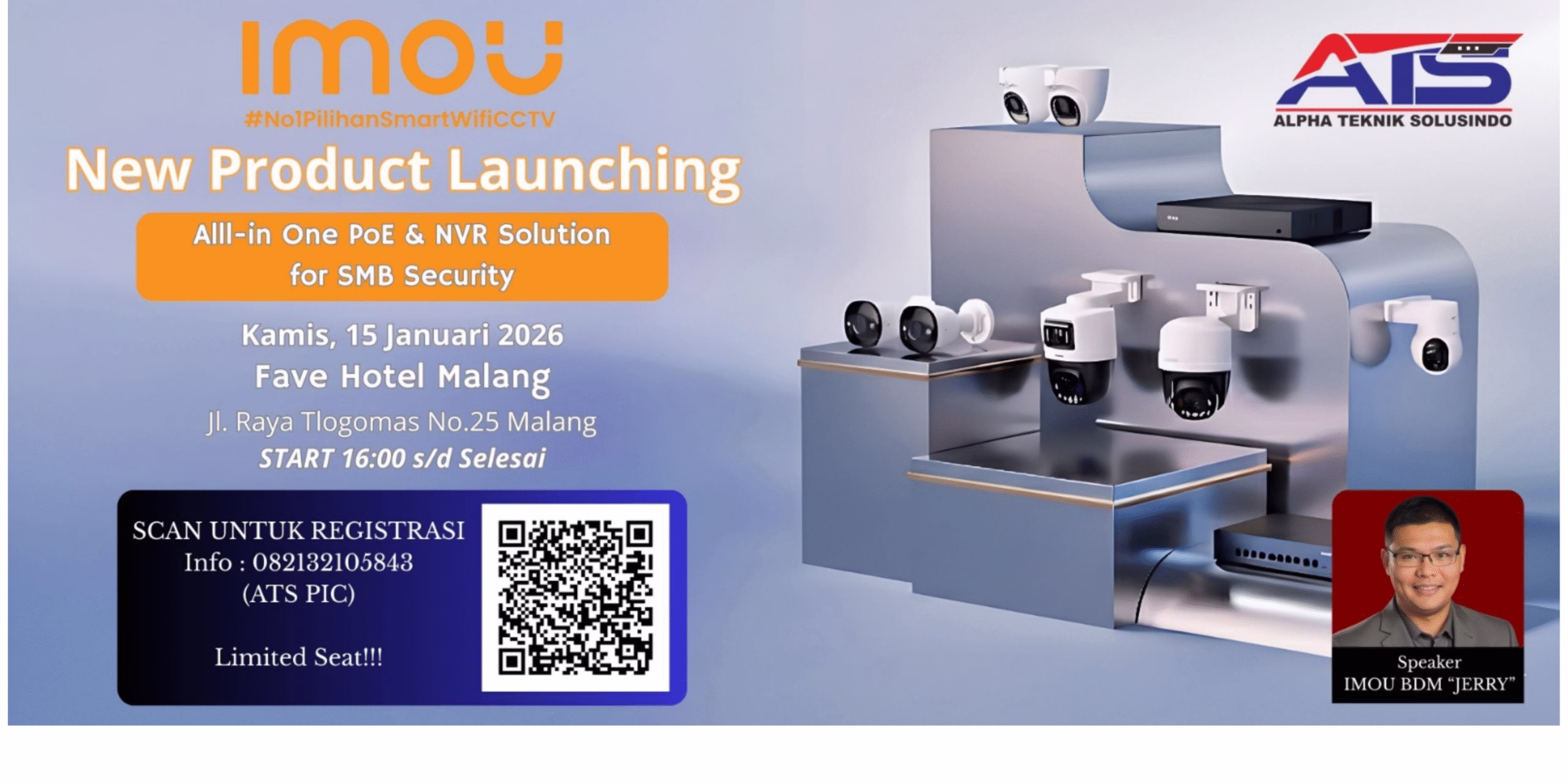 Industri keamanan semakin berkembang, dan kebutuhan akan sistem CCTV yang lebih cepat, akurat, serta mudah dikelola menjadi prioritas utama bagi banyak pelaku usaha. Menjawab kebutuhan tersebut, IMOU bersama CV.Alpha Teknik Solusindo (ATS CCTV) resmi menghadirkan rangkaian produk terbaru yang mengintegrasikan teknologi PoE dan NVR All-in-One, dirancang khusus untuk skala Small & Medium Business (SMB).